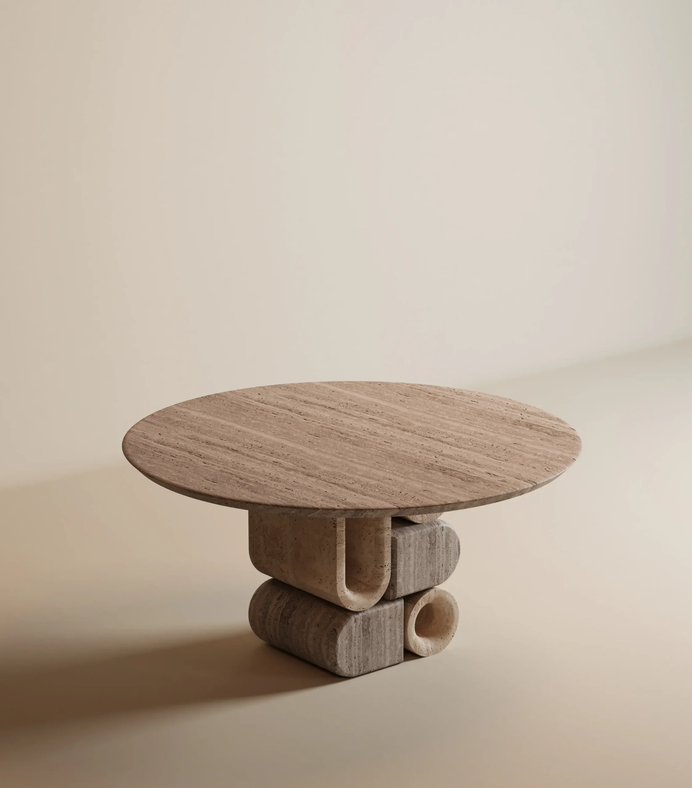 Inspired by the beauty and radiance of the moon, this table features a unique base composed of interlocking, harmonious blocks that create a stunning interplay of light and shadow.
